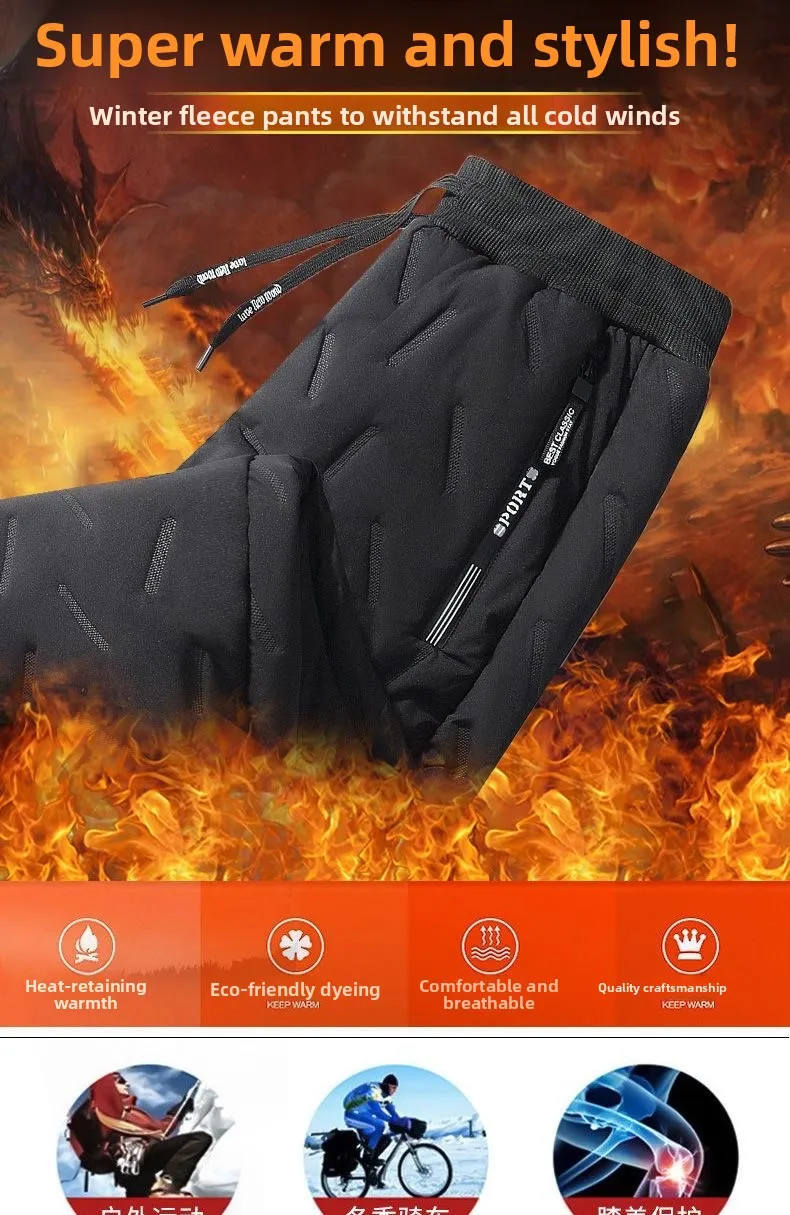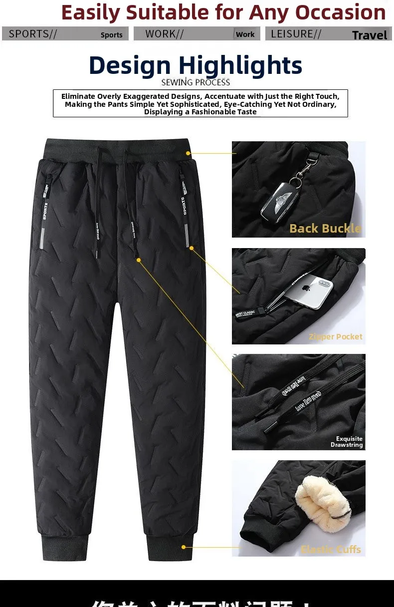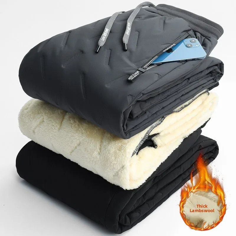 Winter Men's Large Size Casual Lamb Velvet Fce Lined Thiened Outdoor Warm Loose Cuffed Downproof Windproof Cotton Pants